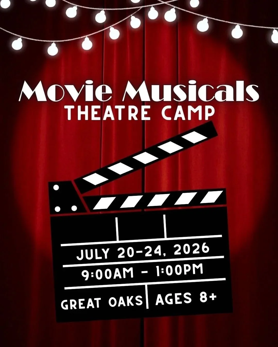 Have you ever wondered what makes a musical a musical? How is it different on stage versus on film? And how does music help create those unforgettable characters we all love? We’re exploring it all — in the most fun, hands-on way possible! Campers will sing, dance, act, play theatre games, explore iconic movie moments, and learn how music tells a story. From high-energy ensemble numbers to heartfelt solo moments, we’ll discover what makes movie musicals sparkle on the big screen. Campers will dive into exciting acting games and character creation, learn fun dance combos inspired by their favorite movie musicals, and build vocal and performance skills in a supportive, high-energy environment. Through creative movement activities, team presentations, and mini scene work, they’ll grow as performers while gaining confidence, making new friends, and sharing lots of laughter along the way! If your child loves to sing in the car, perform in the living room, or dreams of their big stage moment, this camp is the perfect place to shine.