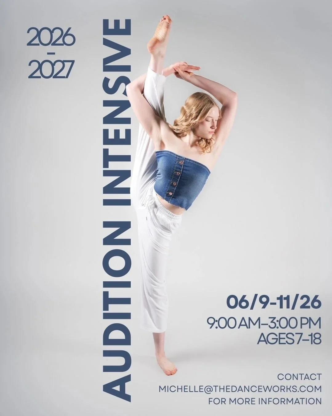 Designed for dancers preparing for middle school or high school drill team auditions, this intensive focuses on precision, performance quality, kick technique, transitions, and stamina. Dancers will learn drill-style choreography, clean lines, and confident performance skills to feel prepared and competitive for upcoming auditions. CLICK HERE TO SIGN UP